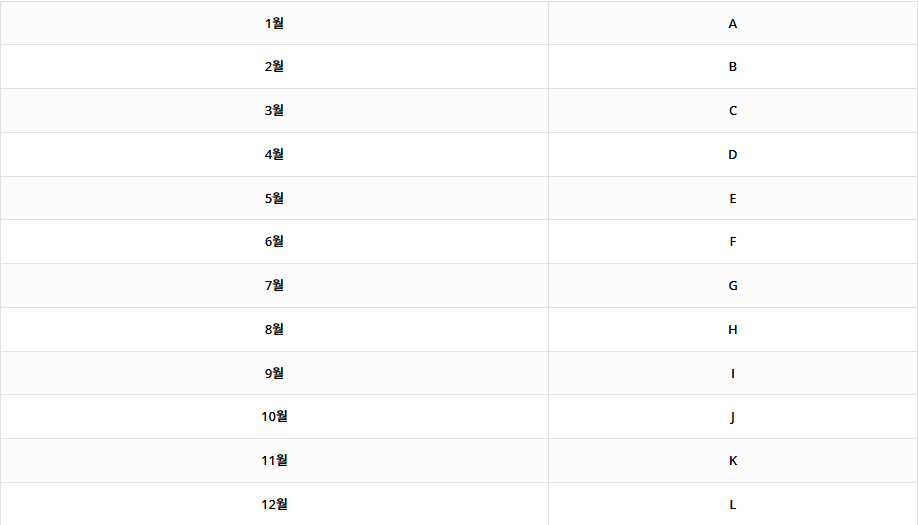 - 알파벳 2자리 중 첫 번째는 제조년도를,